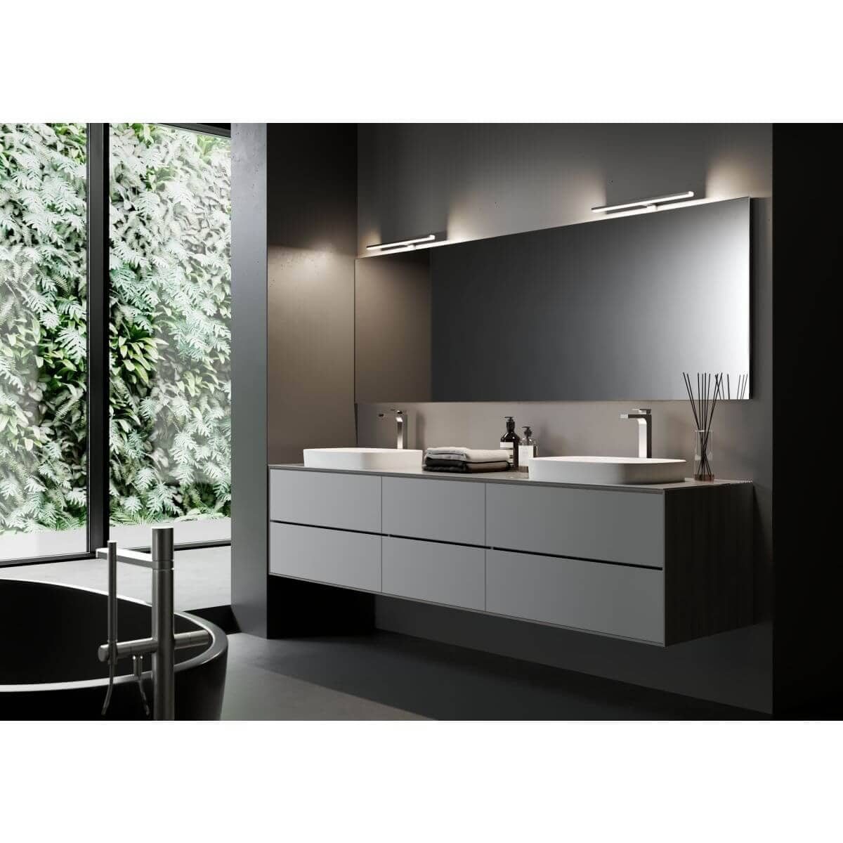 Die Spiegelleuchte AALTO von Domus Line verbindet modernes Design mit hoher Funktionalität und schafft eine perfekte Beleuchtungslösung für Badezimmer und Ankleidezimmer. Mit ihrer symmetrischen Lichtverteilung sorgt sie für eine gleichmäßige, klare Ausleuchtung des Gesichtsfeldes – ideal für tägliche Pflegeroutinen wie Rasieren oder Make-up-Auftragen.