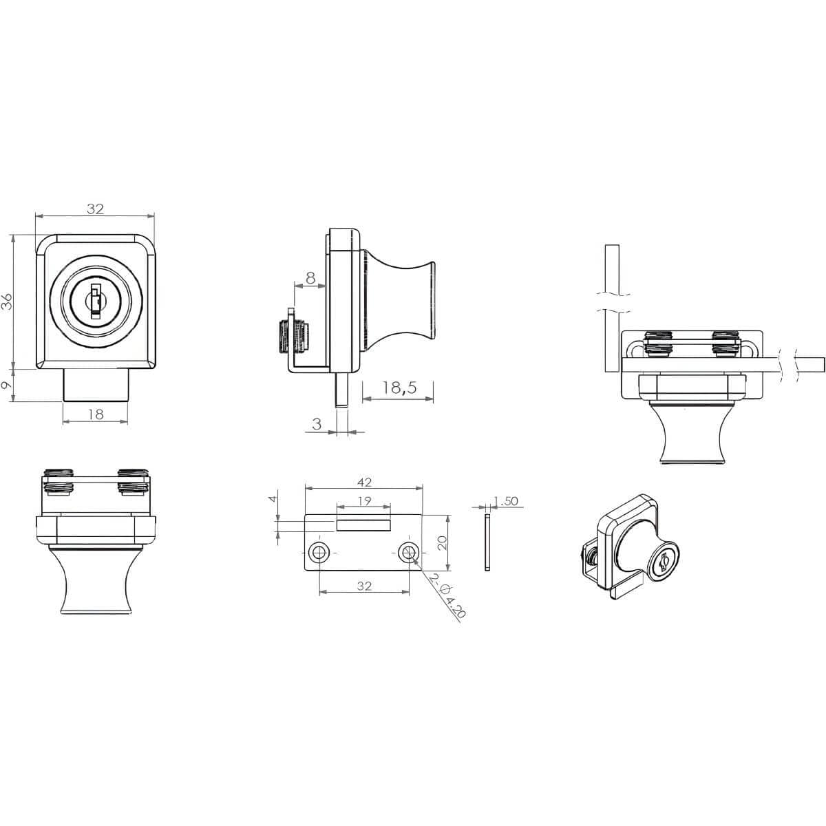 - 1 pezzo - Serratura per porte in vetro incl. piastra di chiusura e 2 chiavi