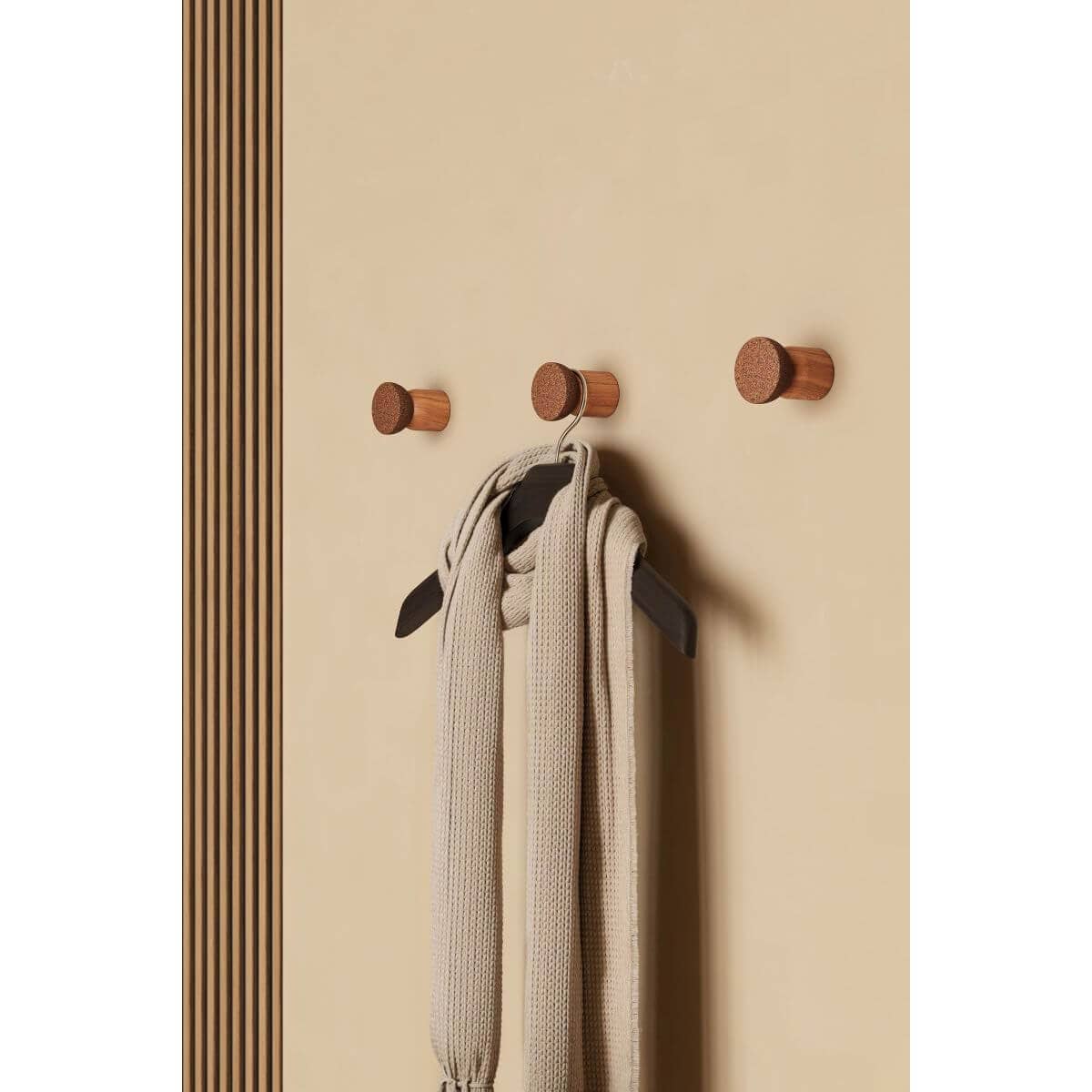 Ganci appendiabiti profondi PECO in legno & sughero, Ø 38 x 72 mm.