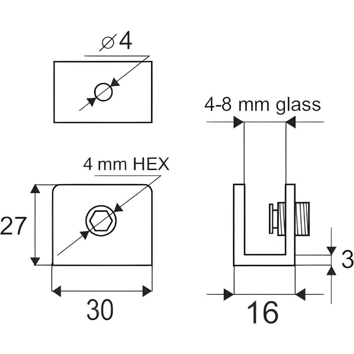 Il supporto per ripiani a morsetto SQUARE di Siso è la soluzione ideale per il montaggio sicuro ed elegante di ripiani in vetro in armadi e vetrine. Progettato per vetri di spessore compreso tra 4 e 8 mm, questo supporto consente un fissaggio semplice e stabile senza la necessità di attrezzi costosi o sistemi di montaggio complicati. Grazie alla pratica vite di serraggio in metallo con punta in plastica, il ripiano in vetro rimane saldamente e affidabilmente in posizione, mentre il materiale del supporto stesso garantisce un utilizzo duraturo.