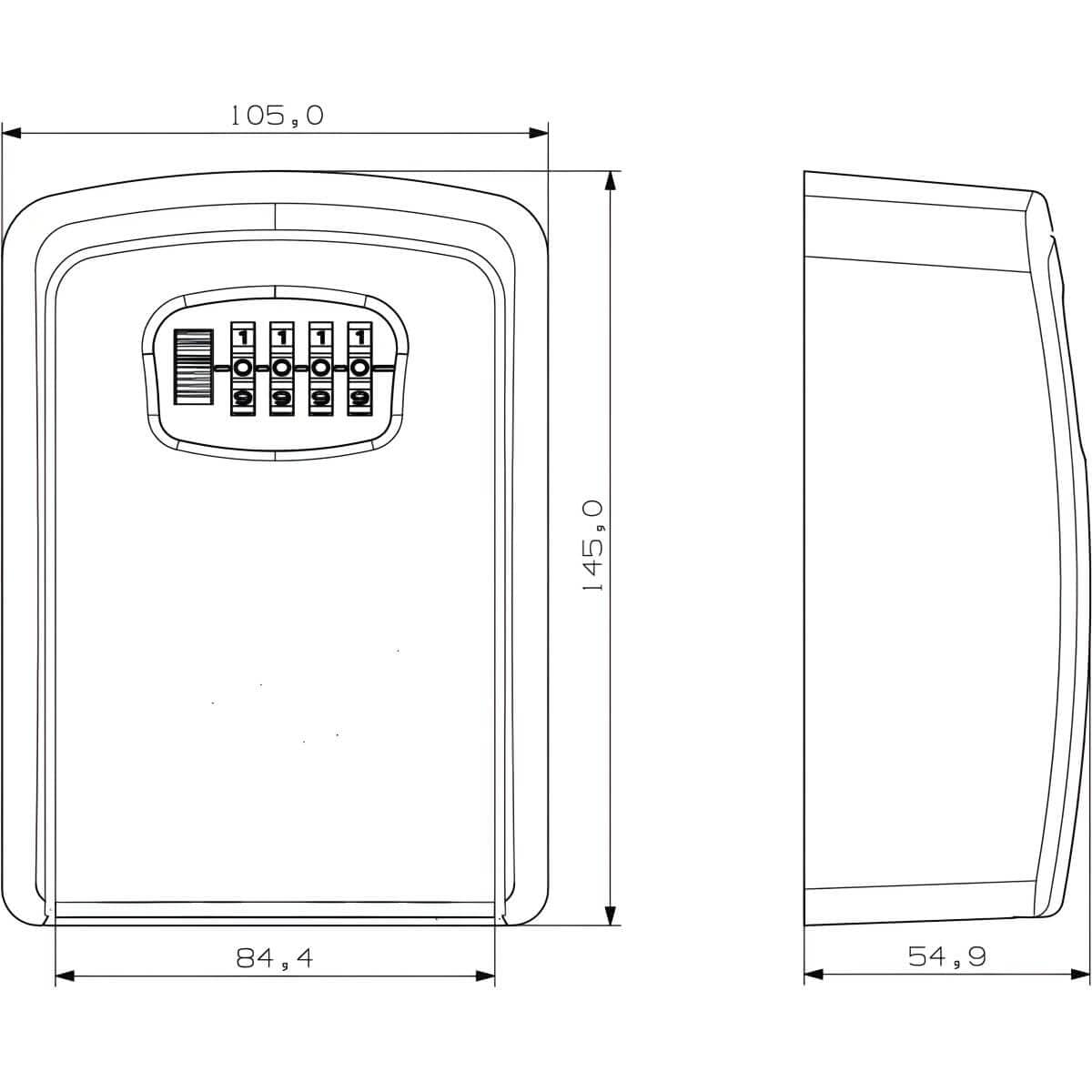Cassaforte per chiavi Siso con serratura a combinazione a 4 cifre, 105 x 145 x 55 mm