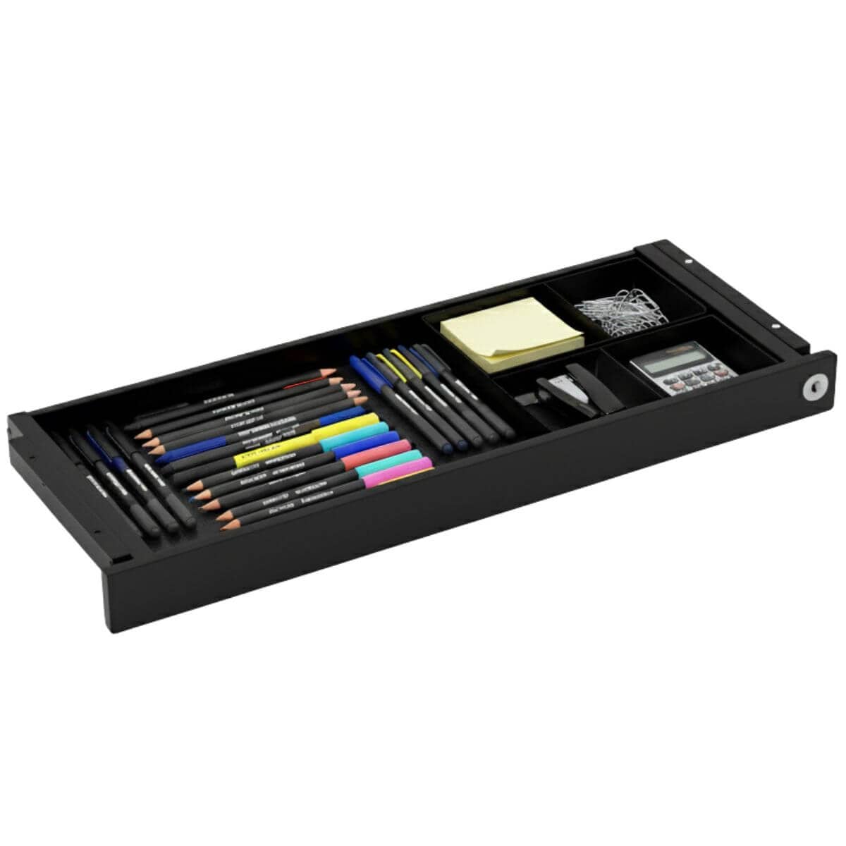 Gefertigt aus robustem Kunststoff mit einer eleganten MDF-Front überzeugt die STORIT SLIM durch Langlebigkeit und modernes Design. Sie lässt sich schnell und unkompliziert direkt an der Unterseite Ihrer Tischplatte montieren und ist mit allen BMB-Tischmodellen kompatibel. Dank der kugelgelagerten Schienen mit Vollauszug öffnet und schließt die Schublade besonders leichtgängig – für maximalen Komfort im Arbeitsalltag.
