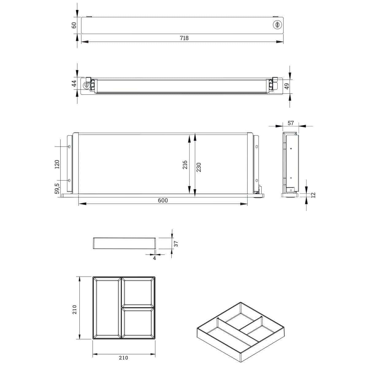 Die STORIT SLIM Unterbau-Schublade von BMB ist die ideale Lösung, um Ihren Arbeitsplatz ordentlich und funktional zu gestalten. Mit einer Breite von 600 mm, einer Höhe von 60 mm und einer Tiefe von 216 mm bietet sie ausreichend Stauraum für Ihre wichtigsten Utensilien – und bleibt dabei dezent unter der Tischplatte verborgen.