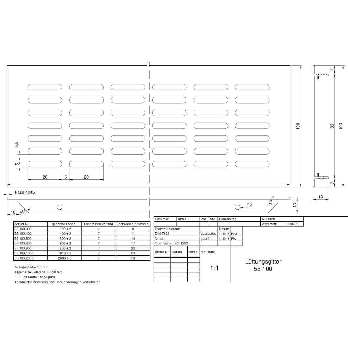 Gedotec Lüftungsgitter aus Aluminium mit gerillten Stegen, 300 - 1000 mm